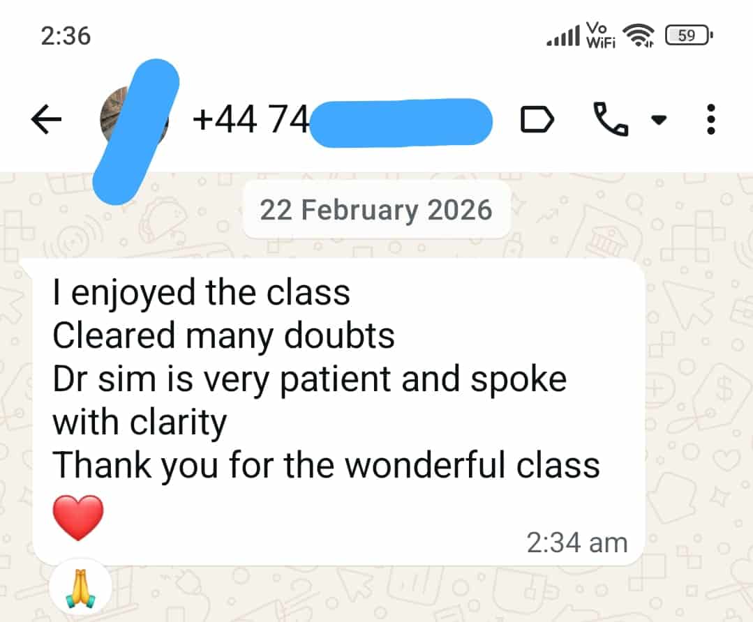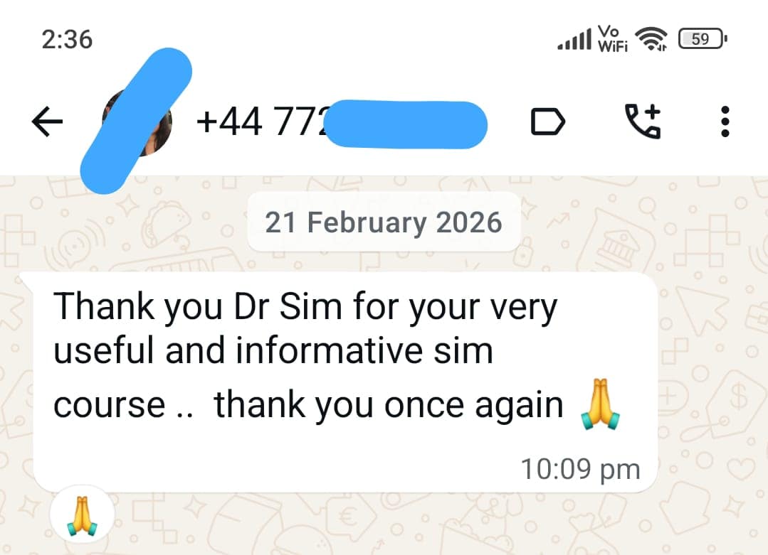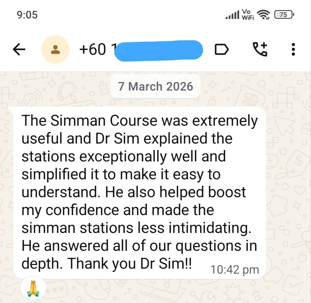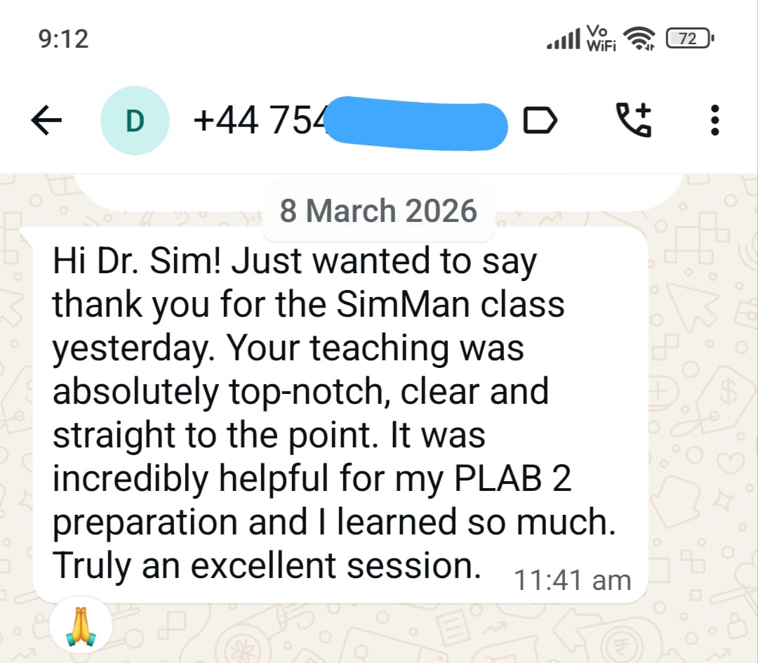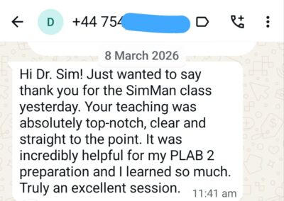 To book your spot for Dr. Sim’s upcoming Live Online PLAB 2 SimMan Course on April 11, 2026, please click the Register and Pay option below to proceed with filling in your registration details and completing payment on the checkout window.